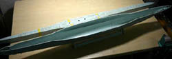 こうして切断したハルの上下をあわせてみると、中央部や端の浮いて隙間が開いている事があります。そのような場合のためにハルの上下固定には一工夫が必要になります。